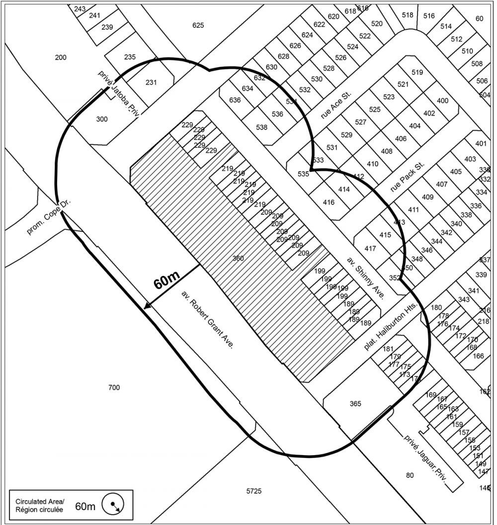 (Property at 360 Haliburton Heights affected by minor variance application. Diagram: Committee of Adjustment, City of Ottawa)