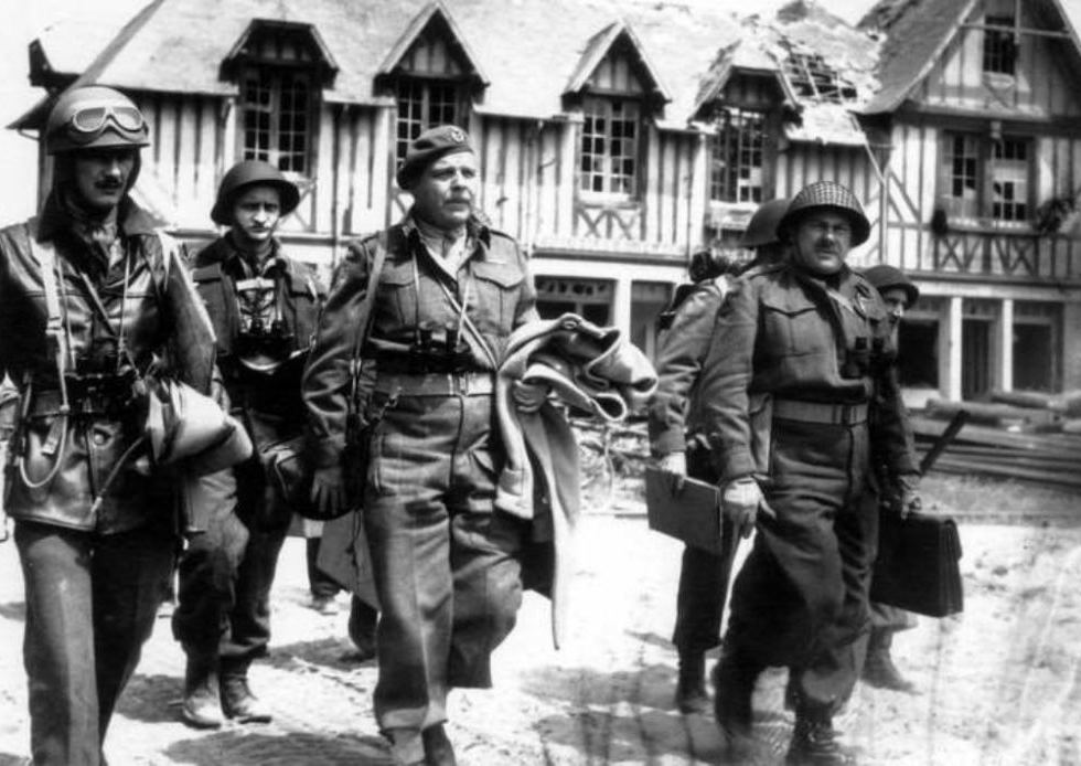 (General R.F.L. Keller middle of photo with his officials on D-Day, June 6, 1944, Normandy, France. All photos provided by Geoff Osborne)