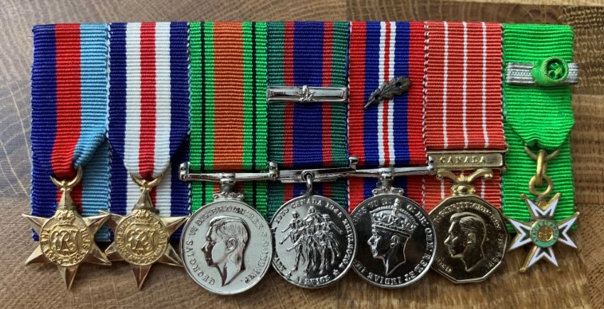 Lt.-Col. Olmsted received many decorations and medals for his part in the war effort – 1939-45 Star; France and Germany Star; Defence Medal; Canadian Volunteer Service Medal and Clasp; War Medal 1939-45; Mentioned in Despatches; and the Canadian Forces’ Decoration with 1st Clasp.