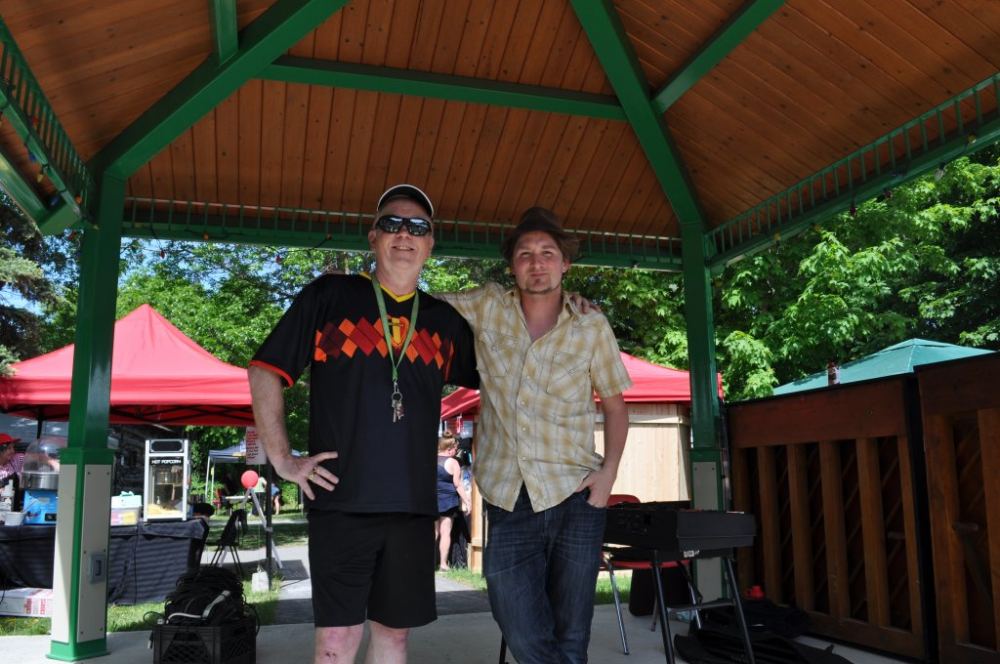 (Doug Sutherland (l), Arts in the Park organizer, and Tyler Kealey (r), one of the many performers at Arts in the Park)