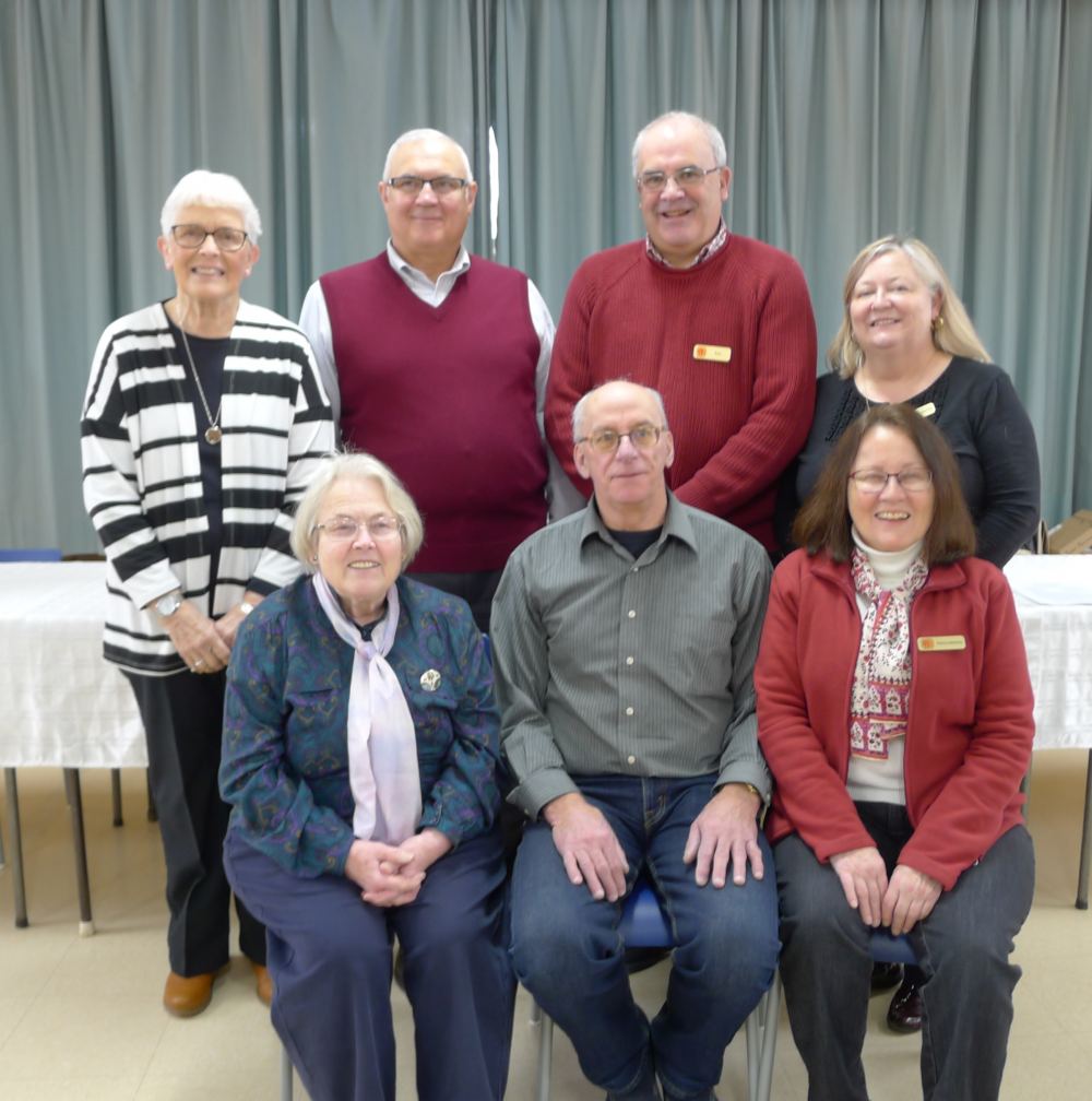 (2019 Board of Directors for the Goulbourn Township Historical Society are back row l-r: Judith Richardson, Roger Young, Bob Halberstadt, Sue Clark-Dow and front l-r: Lee Boltwood, John Bottriell, Patricia Barlosky. Missing from the photo is Vice-President, Shaun Peppy.)
