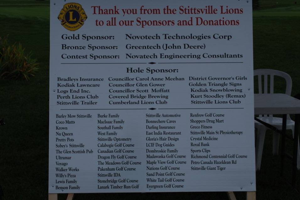 Volunteers for the golf event were: Clare Redtman, Marilyn Southall, Sarah Monk, Brenda Miller, Marion Gullock, Don Zogola, Ron Armstrong, Renee Devenny and Jim Devenny. The Stittsville Lions thank you all – without your support and hard work, the event would not have been the success that it was.