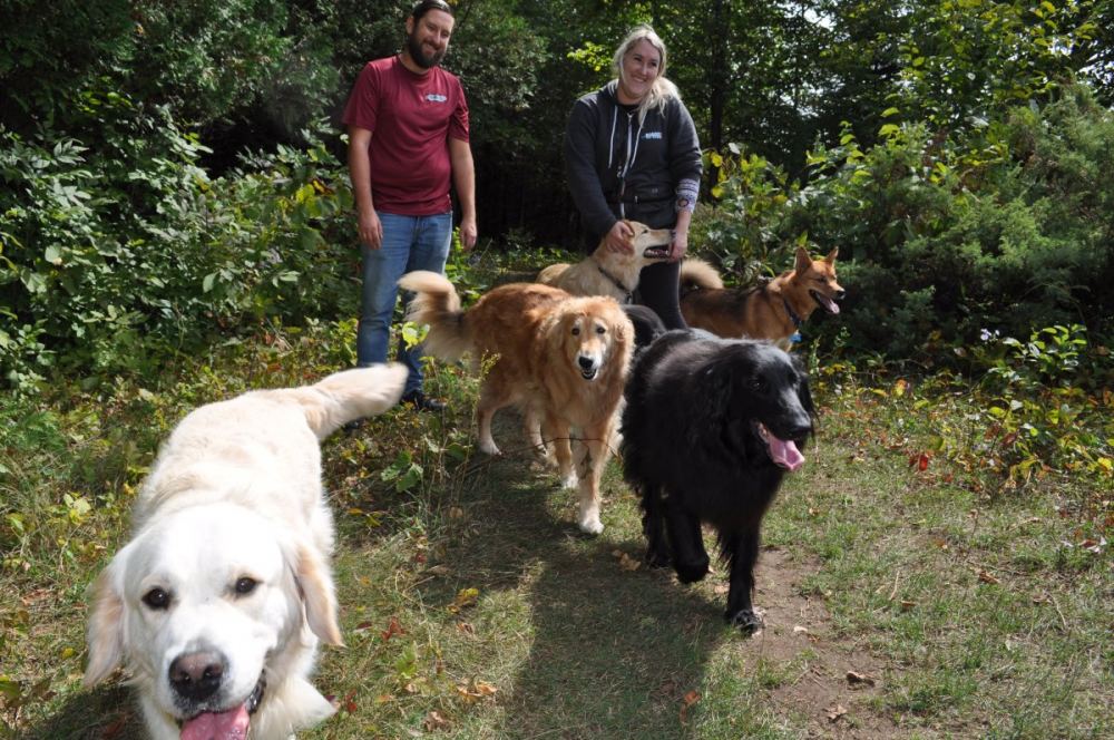 Heidi and Kevin Johnstone moved to Stittsville in 2008. Heidi, because of her love of dogs, started the dog-walking business Boogity (http://boogity.ca) in 2010. The couple both knew there was a need and a niche for an off-leash dog park in Stittsville. The opportunity arose to have such a dog park when Kevin, driving around the local countryside, found the perfect spot to open Barkwood Forest – Fernbank Road at the Jinkinson sideroad.