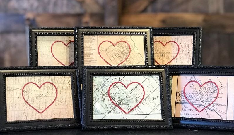 Unique hand embroidered local maps by Sadie & June are hand stitched and framed – a reminder of the places, people, and adventures you enjoyed over the years. A great memory keepsake! Maps of Ashton, Goulbourn, Munster, Richmond, Stanley’s Corners, and Stittsville are being sold for $25.00.
