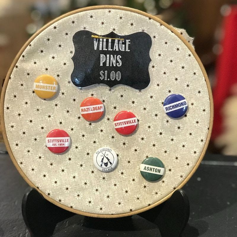 Where do you come from – Ashton, Hazeldean, Munster, Richmond or Stittsville? Your community pride can be worn on your lapel with the purchase of the Museum’s Village Pins. For $1.00 each you can outfit the whole family.