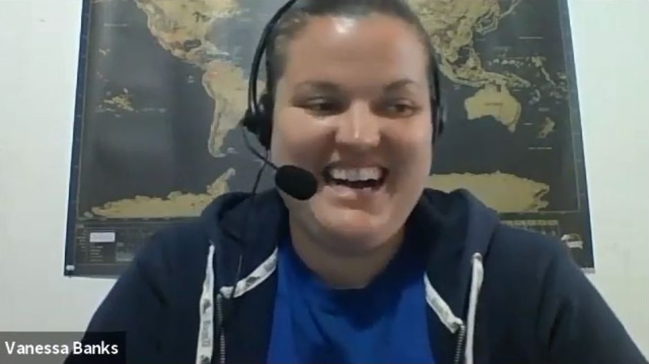Vanessa Banks addressing the Stittsville audience as she relates her story of her missions from military to missionary on August 17, 2020.