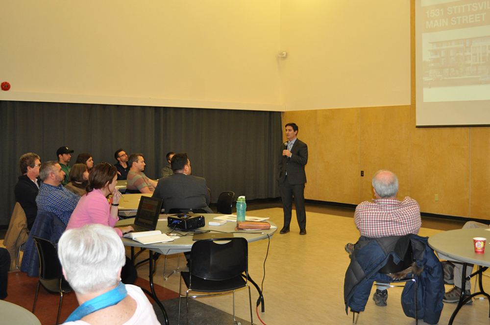 A well-attended open house took place on March 6th, that Councillor Glen Gower, Ward 6 Stittsville, organized for a proposed new development on Main Street. The open house was held to allow the community to learn more, ask questions and share their comments about the proposed development of a mixed use 4 storey building and 7 townhouses to be constructed at the corner of Stittsville Main and Orville Streets.
