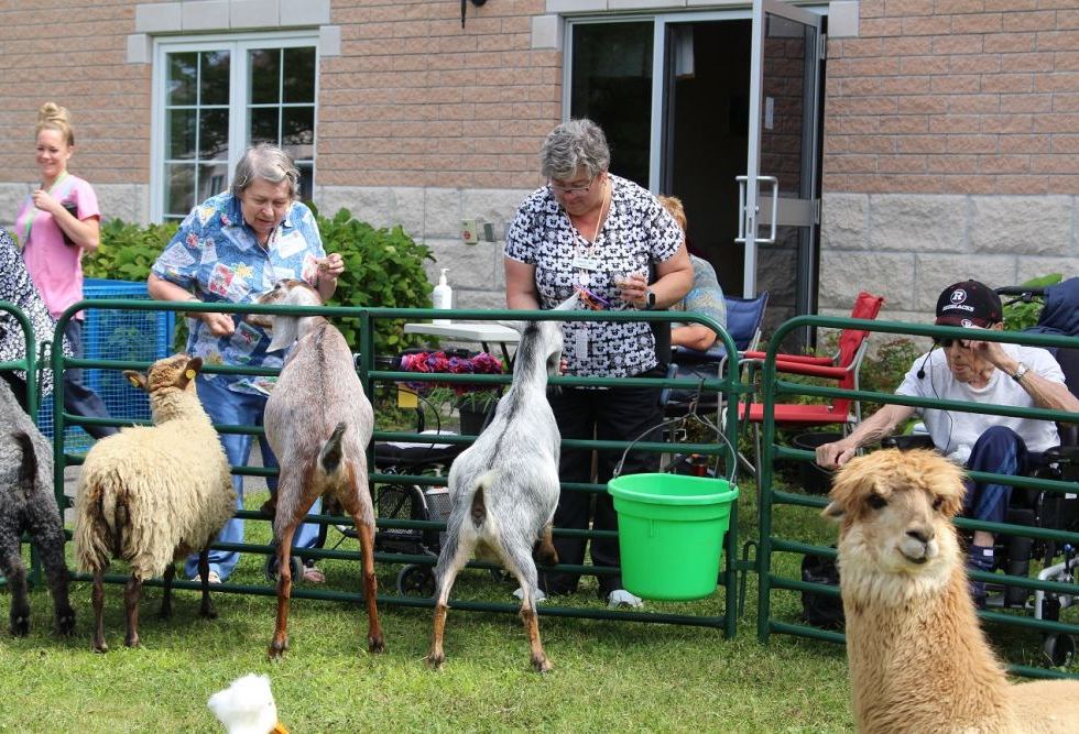 Residents, families and the team all shared their ideas for the fair, and “the most common themes were animals, food, games and laughter,” says Kayla. With this in mind, the team developed a week of events, including petting farm, ice cream truck, carnival, bingo and face painting. One resident, who has difficulty communicating at times, burst into song at the Petting Farm, singing “Oh, dear, what can the matter be… Johnny so long at the fair” while she watched the animals pass by.