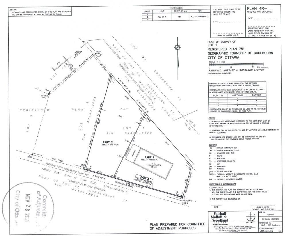 And, over at 11 McCooeye Lane, landowners, Ron & Colleen Moore, have applied to subdivide their property into two separate parcels of land. The existing dwelling will remain on one parcel, with the second parcel remaining vacant for future residential development. Also, Minor Variance Applications D08-02-18/A-00421 and D08-02-18/A-00422 have been filed and will be heard concurrently with this application as the severed lots will not be in conformity with the requirements of the Zoning By-law.