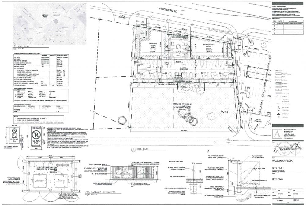 At 6150 Hazeldean Road, the owner, 2073945 Ontario Inc., has submitted plans to construct a one-storey restaurant and a two-storey medical facility on the subject property (the former Stittsville Flea Market), and has filed a Minor Variance Application that requires the Authority of the Committee for Minor Variances from the Zoning By-law as follows: