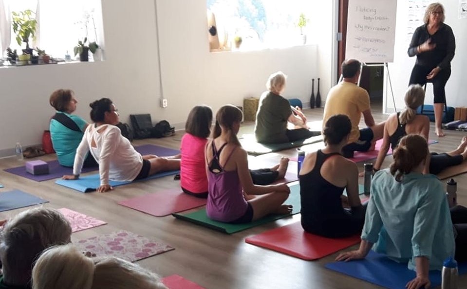 Jody offers non-pharmaceutical pain treatment yoga through – education, movement, stress relieving tools, planning and retraining the brain. She wants to help clients to build their capacity and be able to “live your life with more ease”. Her classes teach students about pain; the importance of sleep; dealing with stress/difficult emotions – breathing and relaxation; introduces students to “guidelines for recovering movement in persistent pain”, which is directly from the training Neil Pearson created for Pain Care Yoga; healthy eating; positive thinking; making action plans; and, looking back/planning for the future.