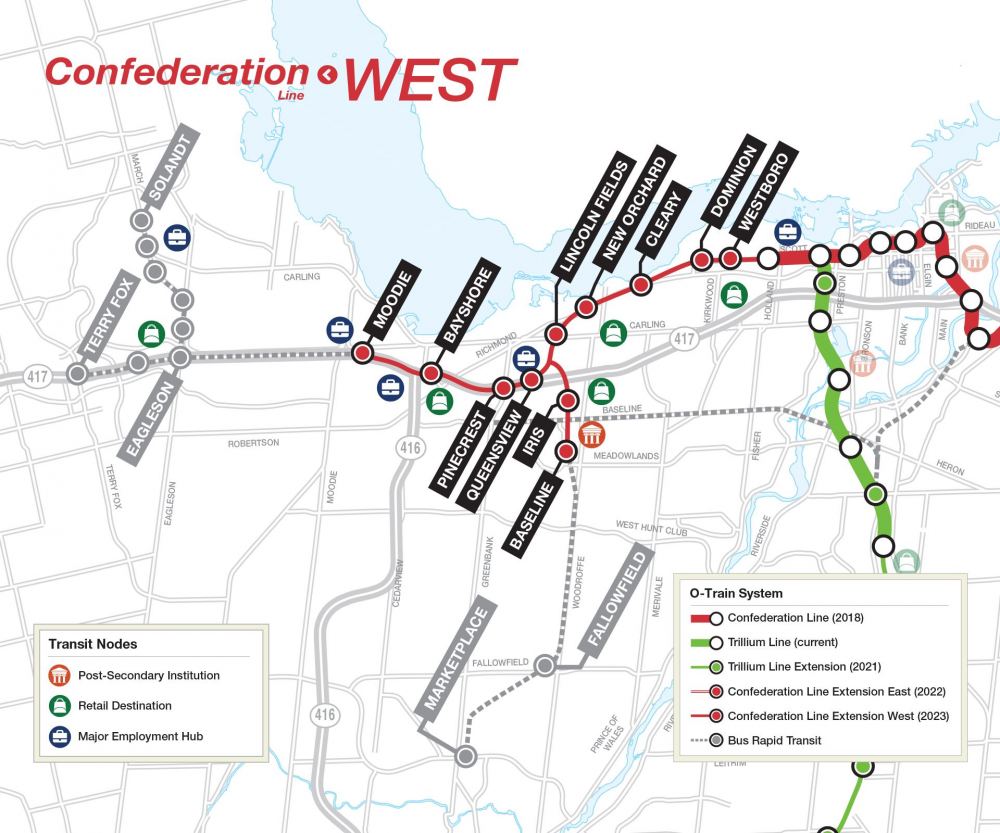 The Confederation Line east and west extensions are scheduled for completion in 2024 and 2025, respectively.