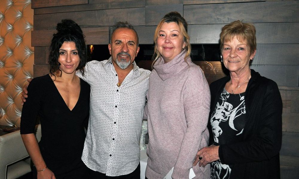 (At the December 30, 2019 cheque presentation to Tammy Rhyholm from the annual Napoli’s customer appreciation and charity dinner are l to r: Nicole Khalil, Bassel Khalil, Tammy and Tammy’s Mom, Bonnie Fitz. Photo: Stittsville Central)