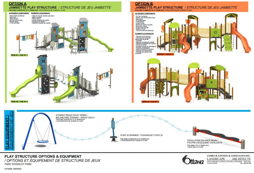 Community members are invited to provide comments and preferences between Option A or Option B. The concept plans and images below show the two options being profiled for the playground development.