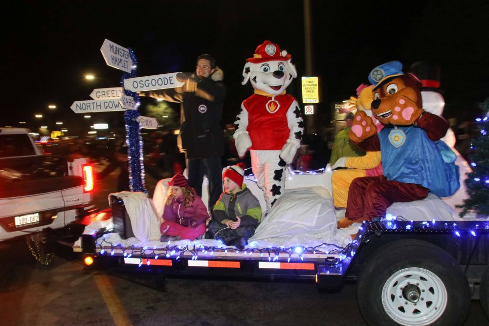 The Main Street of Stittsville came alive Saturday evening as everyone came out to celebrate the Stittsville Village Association’s “Parade of Lights”. Many local businesses offered hot chocolate and treats of all sorts to excited children and their families. Our recently elected Ward 6-Stittsville Councillor Glen Gower took part in his inaugural parade appearance on the City of Ottawa float. Joining him were Mayor Jim Watson, local money raising celebrity Tysen Lefebvre and local Special Olympics pairs figure skater, Jack Fan. Barry Gray our fantastic contributing photographer was there to capture the moments.