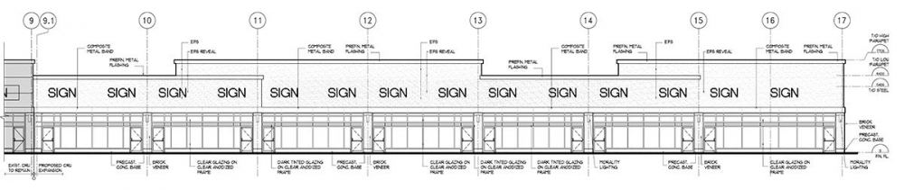 • Pad “B”, the highlighted area at the bottom of the map above would be constructed as a free-standing multi-tenant building.
