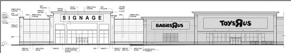 • Box “D”, highlighted in the upper-right of the map would be a single-use building connected to the existing Toys R Us building.