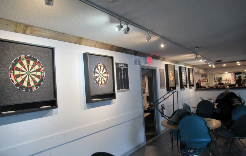 With fundraising slowed down for the re-build, Ellen Johnson the Branch Secretary said, “the members knew that something had to be done to attract people when the doors re-opened” and was happy to share all of the details when it was decided to upgrade the lounge area. A team of volunteer Legion members pooled their various talents – planning the work needed to bring life to the lounge area in the basement and putting the plans in motion. The lounge is so much brighter with new lighting fixtures, flooring, clean white walls and new foam backs for the dartboards. Councillor Gower dropped in to see the renovations as well and said, “The Legion looks great – a great transformation!”. President, Barb Vant’Slot is “extremely pleased with the end result and looks forward to welcoming members and the community to the Legion.”
