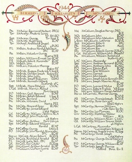 Below is McCaffrey’s headstone in the Beny-sur-Mer cemetery, along with page 382 of the Canadian Book of Remembrance where his name appears. The Book of Remembrance is located in the Memorial Chamber of the Peace Tower, Parliament Buildings, Ottawa. You can view Arthur McCaffrey’s name, along with the name of his brother George (on the same page) on August 12th of each year.