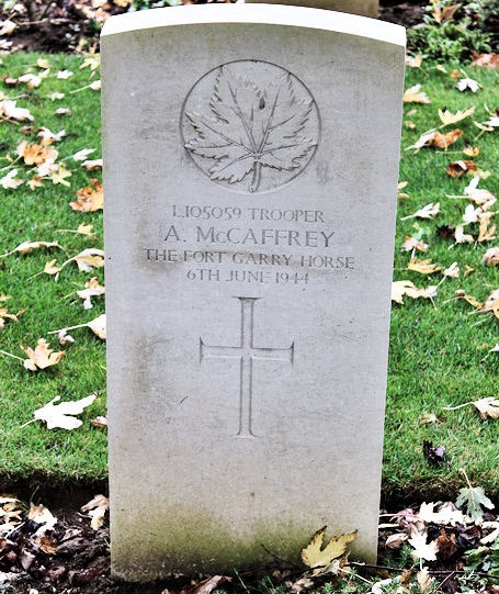 It seems that Arthur’s brother George McCaffrey also joined the war effort. George was born in 1906 and died on September 20, 1944 in Belgium. He was 38 years of age. George was a member of the South Alberta Regiment, R.C.A.C, 29th Armed Reconnaissance Regiment. George is buried in the Adegem Canadian War Cemetery in Belgium.