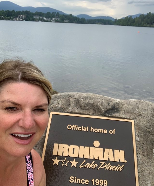 At 6:30 am on July 27, Joanne Rodgers will be entering the transition area at Mirror Lake in Lake Placid, NY to swim the 2.4 mile, two lap race route. After the swim, she will then transition to prepare for the 112 mile, double loop bike ride through the hills of the Adirondacks — including the concluding 11-mile uphill climb up ‘the notch’ from Wilmington, NY and returning to the Lake Placid Olympic speed skating oval. The course ends on July 28 with a 26.2 mile run taking Joanne through the city core of Lake Placid four times. This is the Lake Placid IRONMAN!