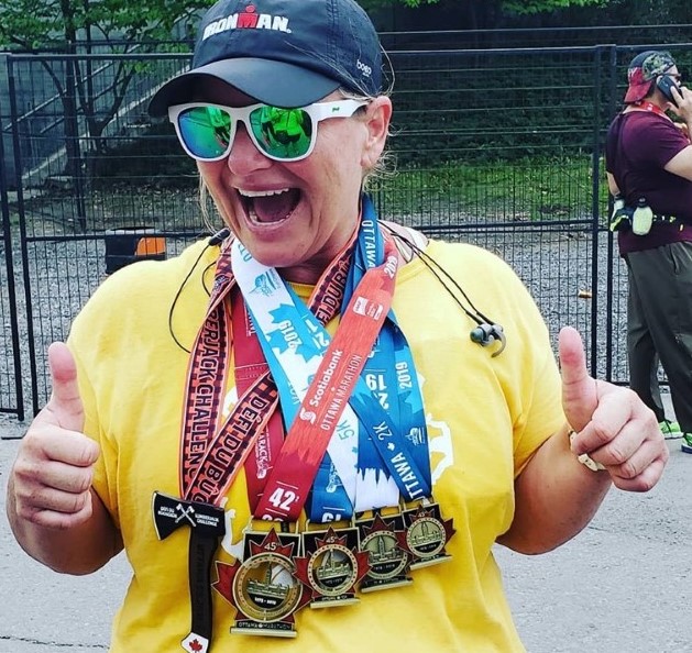 Joanne has always been an adult ‘gym rat’ with her fitness training being a way of life. Joanne started out as a runner and went from a 5K to a 1/2 marathon in 1999. She then started triathlon and started with try a tri’s, the sprints to Olympic and eventually did three 1/2 Iron distance races. “I love them. I love the community and I love the feeling of pushing yourself and challenging your body”.