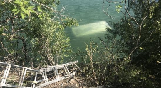 Photo via Todd Horricks/Ottawa Fire. A man in his 20s was unhurt after the commercial van he was driving plunged into a deep pond in the Tomlinson Quarry on Jinkinson…