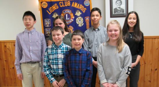 (Contestants in the Stittsville Lions Club Effective Speaking Contest held on February 26, 2020. L to R: Zhenhao Li, Laurent Bourget, Rosa Iuliano (partially hidden), Guillaume Bourget, Evan Moo, Lucy Hambly and Karolina Moo.…