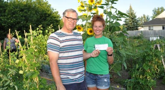 (Ian Frei, President of the Stittsville Goulbourn Horticultural Society, presents donation from the Society’s garden tour to Kim Bonin of Jo-Jo’s Community Garden on August 20, 2019. Photo: Stittsville Central)…