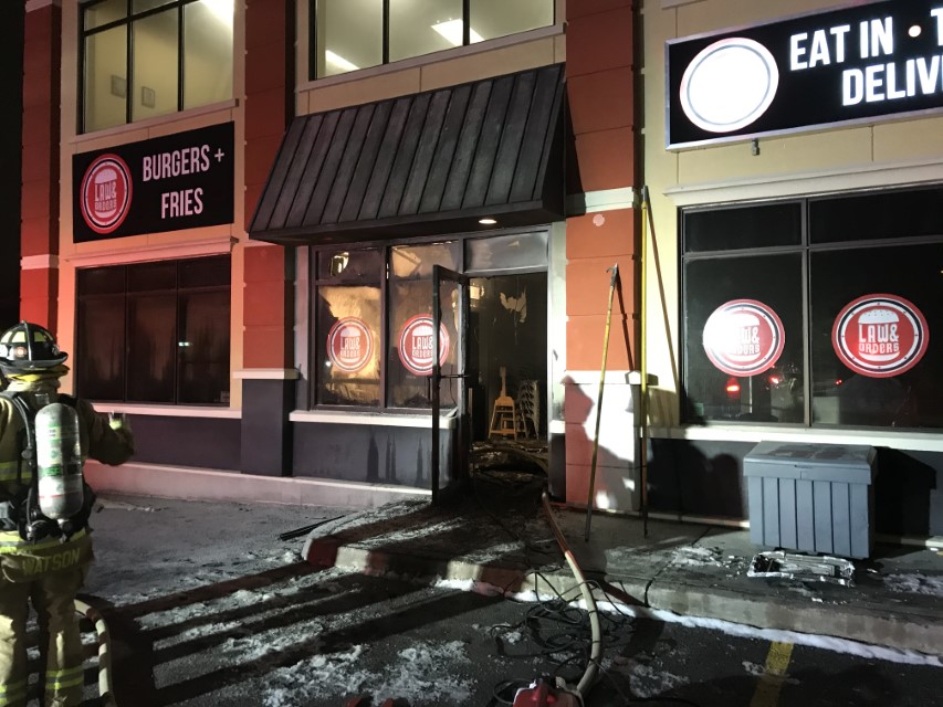 Moments later, Ottawa Fire Services received a call from Ottawa Police at 2:02 a.m. reporting smoke coming from a restaurant, Law & Orders, in a commercial plaza on Terrance Matthews Crescent between Michael Cowpland and Denzil Doyle. Firefighters arrived on location at 2:06pm and entered the building to rapidly extinguish the flames.