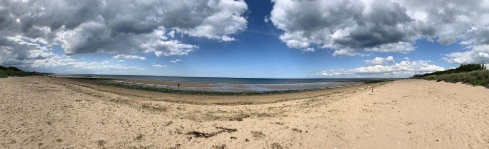 (The landscape of Juno Beach looking towards the shore, June 2019)