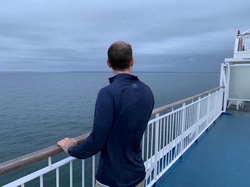 (Geoffrey seeing the French coast at dawn, the village of Caen – 2019)