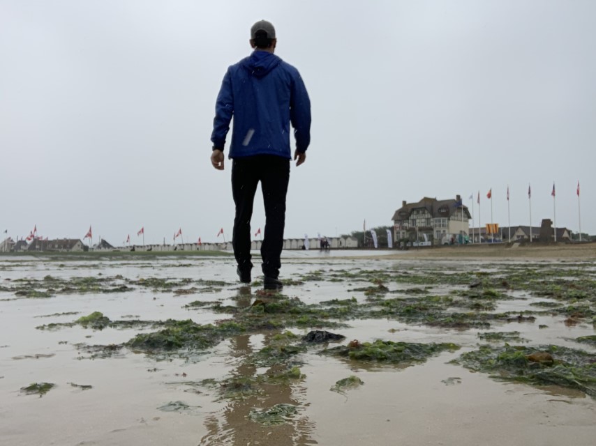 (Geoffrey Osborne retracing the steps that his Grandfather would have taken upon landing at Juno Beach in 1944.)