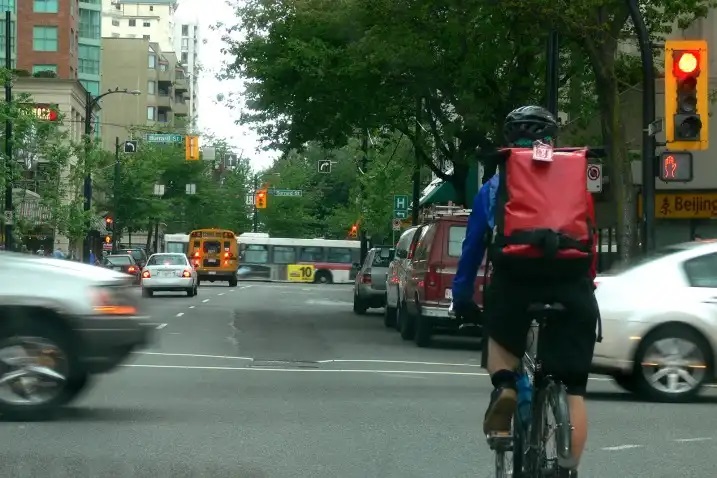 For a fair length, they’re at the side of the road. Not great, but OK. There are two segments where it becomes sandwiched between regular traffic and a turning lane — one of which is for a highway on-ramp. One of these exposures is about 120 meters long. Maybe that doesn’t sound like a lot, but when you’re in the middle of a high traffic-stress road where the speed limit is 70, it feels like a very long time. And it only takes a second for some driver to take you out.