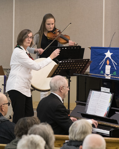 (Vivian McLean playing the hand drum and Peter Brown on piano accompany the West Ottawa Ladies Chorus at Wintertime Cheer. All photos – Thomas Chmara)