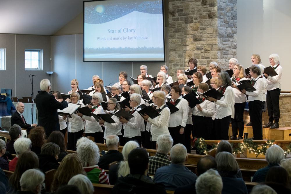 “As founder and music director of the Goulbourn Male Chorus (2010 – 2014) and the West Ottawa Ladies Chorus (2012 to present), it has been such a privilege to lead a stage full of singers over these last several years. Interestingly, both choirs sang their inaugural performances with just 12 singers. Words are difficult to find to express the incredible amount of joy experienced in directing my last annual Christmas Concert ‘Wintertime Cheer’ performed on December 7, 2019 with the West Ottawa Ladies Chorus and how proud I am of this community choir and of each individual singer. My Director’s post-concert feedback included comments on how pleased I was with the balance of voice parts, and the vocal blend elements of tone, diction, dynamics, and phrasing. As far as I am concerned, they could not have been better. For me personally, the greatest joy was seeing the smiles on the faces of the audience and the applause of appreciation for the hard work from the 40 singers who performed each concert song with such joy and confidence. These are truly delightful moments for audience and singers alike. I love Christmas music and I did have my ‘boo-hoo’ moment stepping off the director’s podium knowing it was my last Christmas concert with this amazing group of ladies. But .. it is not my final concert quite yet and I am very much looking forward to directing the April 25, 2020 Spring Concert – a concert that will be filled with Chorus favorites chosen from the last several years. Personally, it could be a bit of a challenge to keep a dry eye. Until then, let the music continue and the memories keep growing. I love this choir.”