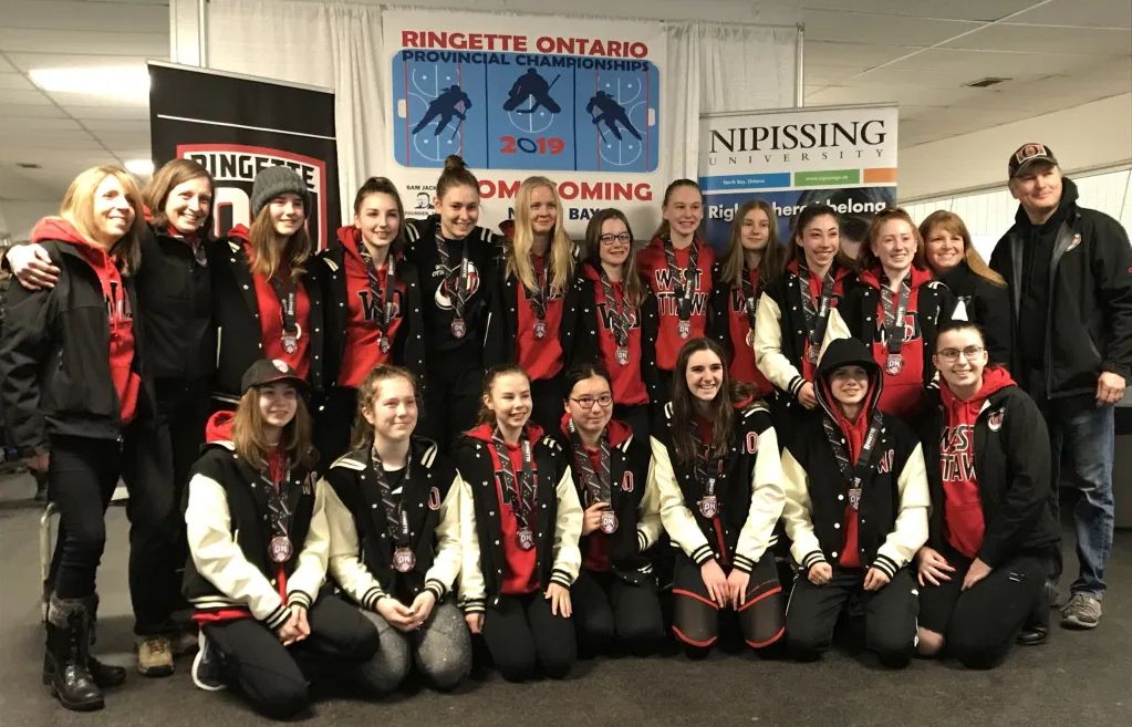 (Stephanie Nugent with the team at the Whitby Provincial Championships in January 2019. Photos: West Ottawa Ringette)
