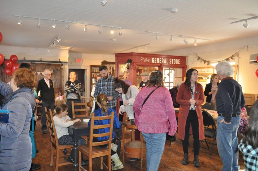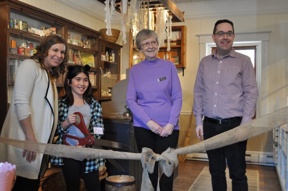 Saturday was an exciting day for the Goulbourn Museum staff and board of directors. The newly revitalized permanent exhibit of ‘The Village General Store’ was officially opened. The exhibit has been re-built and a pane of windows has been installed in front of the general store area allowing you to peer in as if on the outside. In the past, children and adults would often hope that one of the window treasures in a general store would become theirs. An interesting twist – the pane of windows is on wheels, allowing them to be moved when other activities take place at the museum.